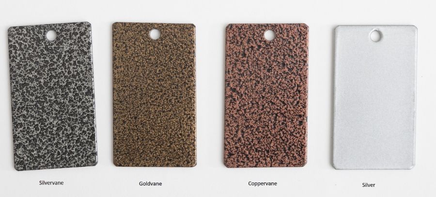 - Premium Powder Coating (Add 5%): Silvervane, Goldvane, Pennyvane, and Silver