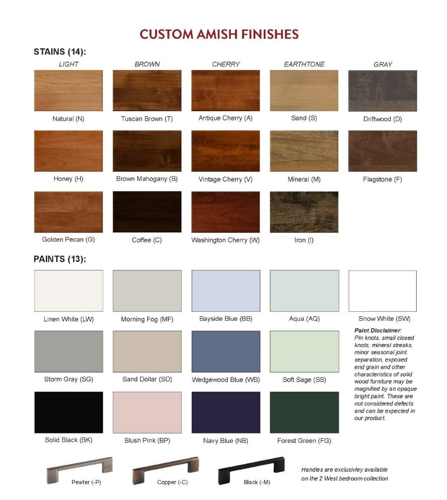 - 27 Amish Custom Finishes and 7 Hardware Choices